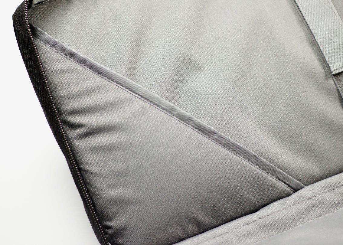 - Internal padded flap along length of zipper protects contents