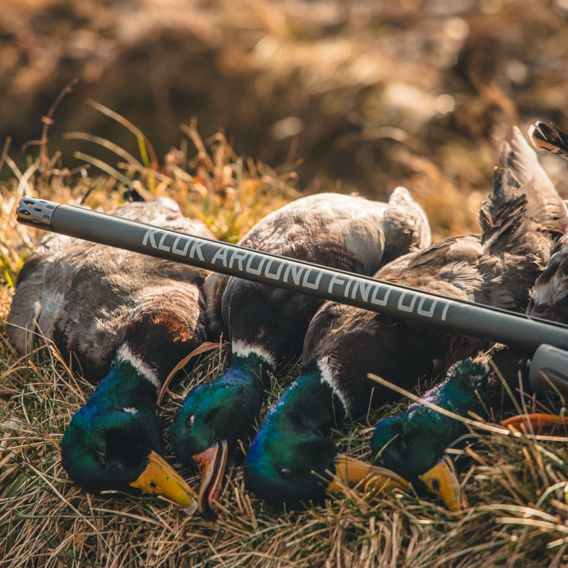 Show your loyalty to your favorite turkey call company with the KLUK AROUND FIND OUT sticker! Available in Gunmetal Gray and Moss Green, this high-quality decal is perfect for your gear box, truck window, or anywhere you want to represent. Built to last, it’s a must-have for every dedicated hunter.